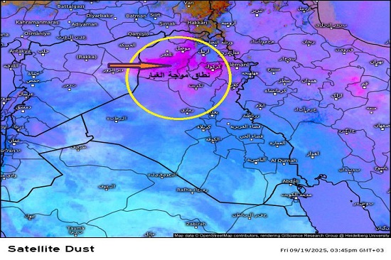 نطاق بداية موجة الغبار ليوم الجمعة 19/9/2025