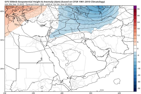 هبوط الحوض البارد في المستوى الضغطي 500 مليبار ليشمل شمال ووسط العراق